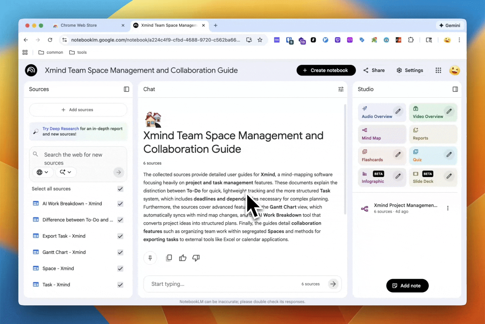 Установите экспортер карты ума NotebookLM / расширение для редактирования карт ума из Chrome Web Store.