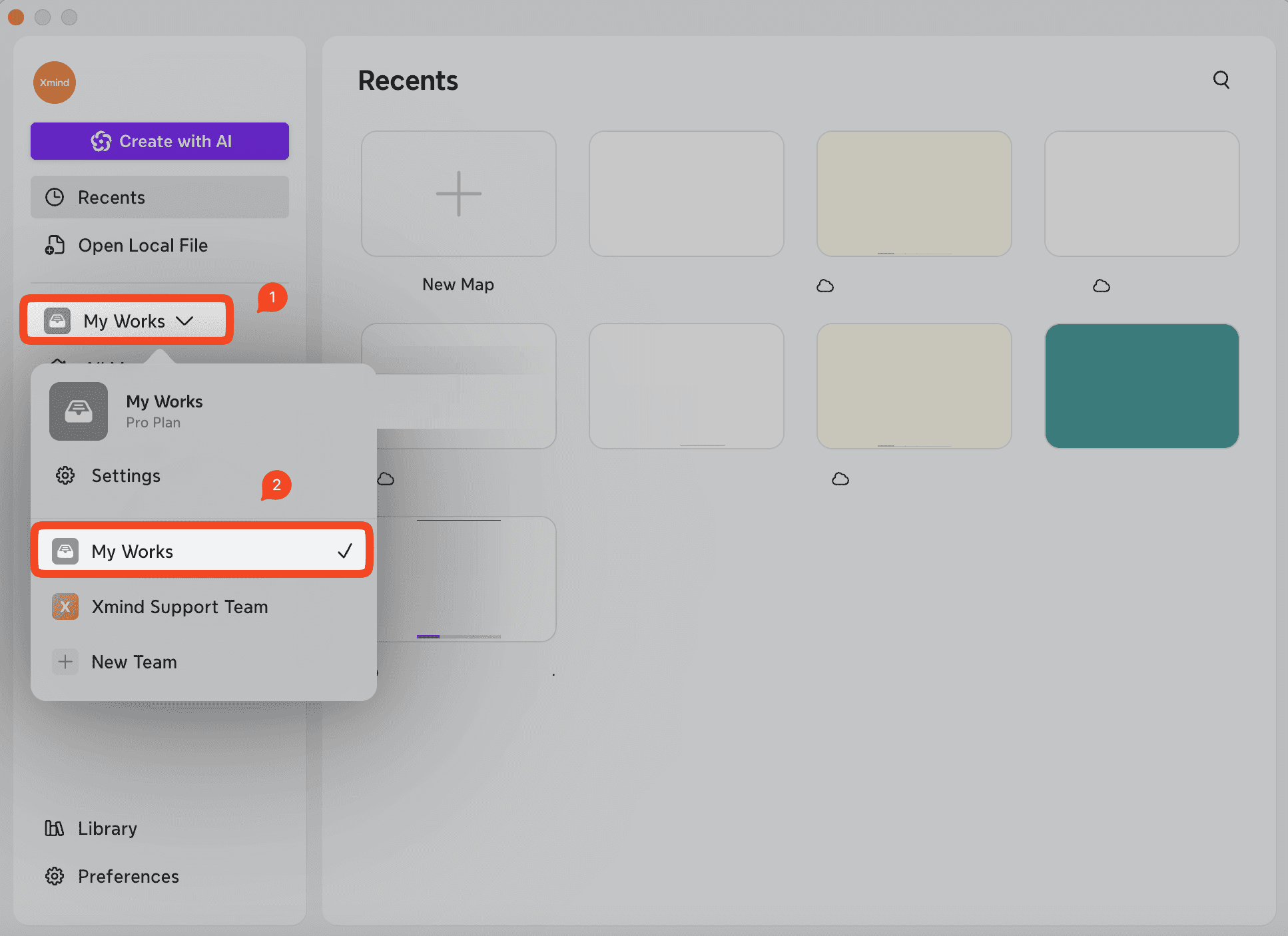 本地文件:前往最近使用以創建本地導圖或點擊開啟本地文件以打開現有文件。