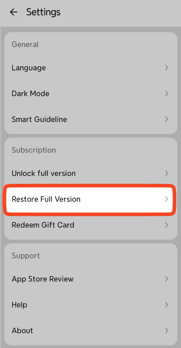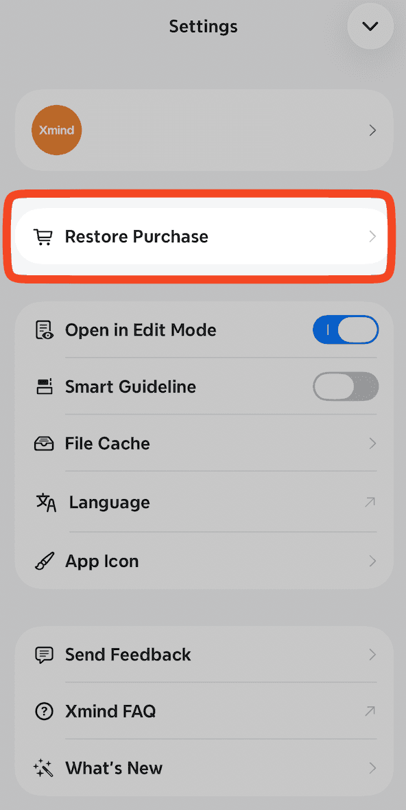 打開 Xmind 應用 → 設定 → 恢復完整版,然後點擊以恢復。
