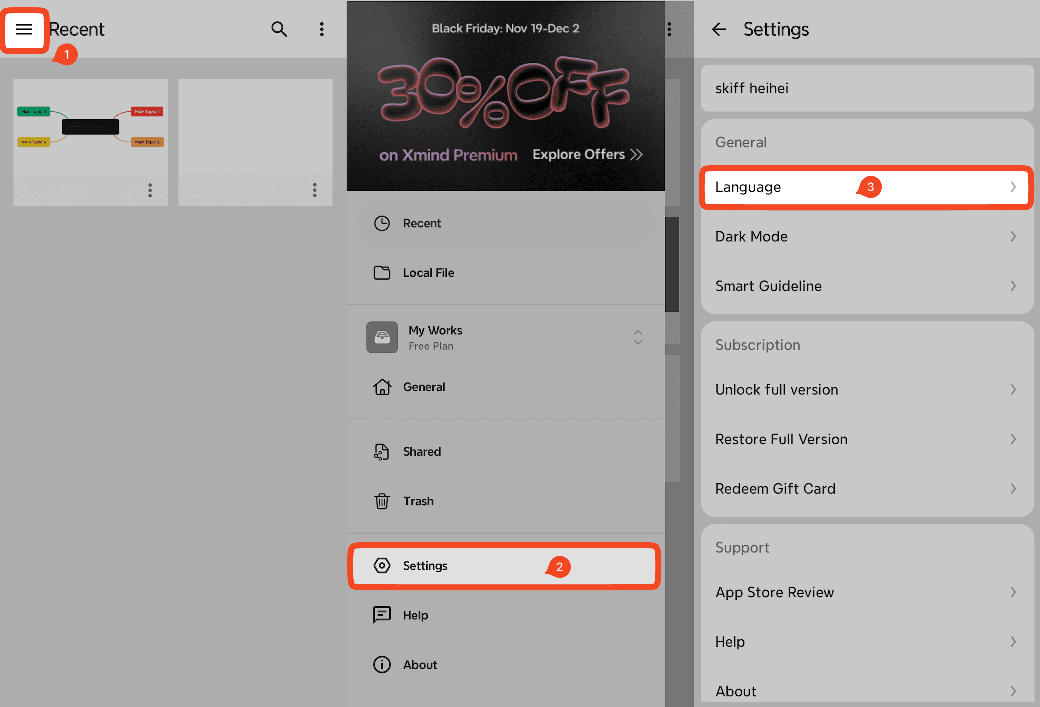 Xmind for Android 提供 6 種語言版本:英語、簡體中文、繁體中文、德語、法語和日語。