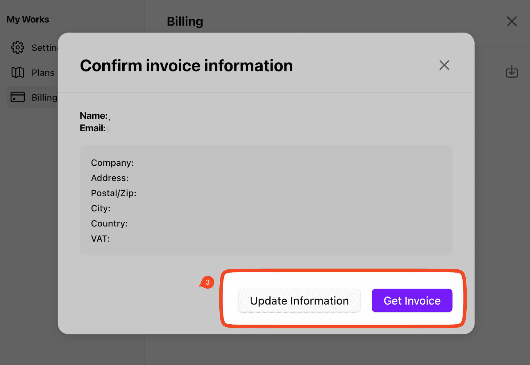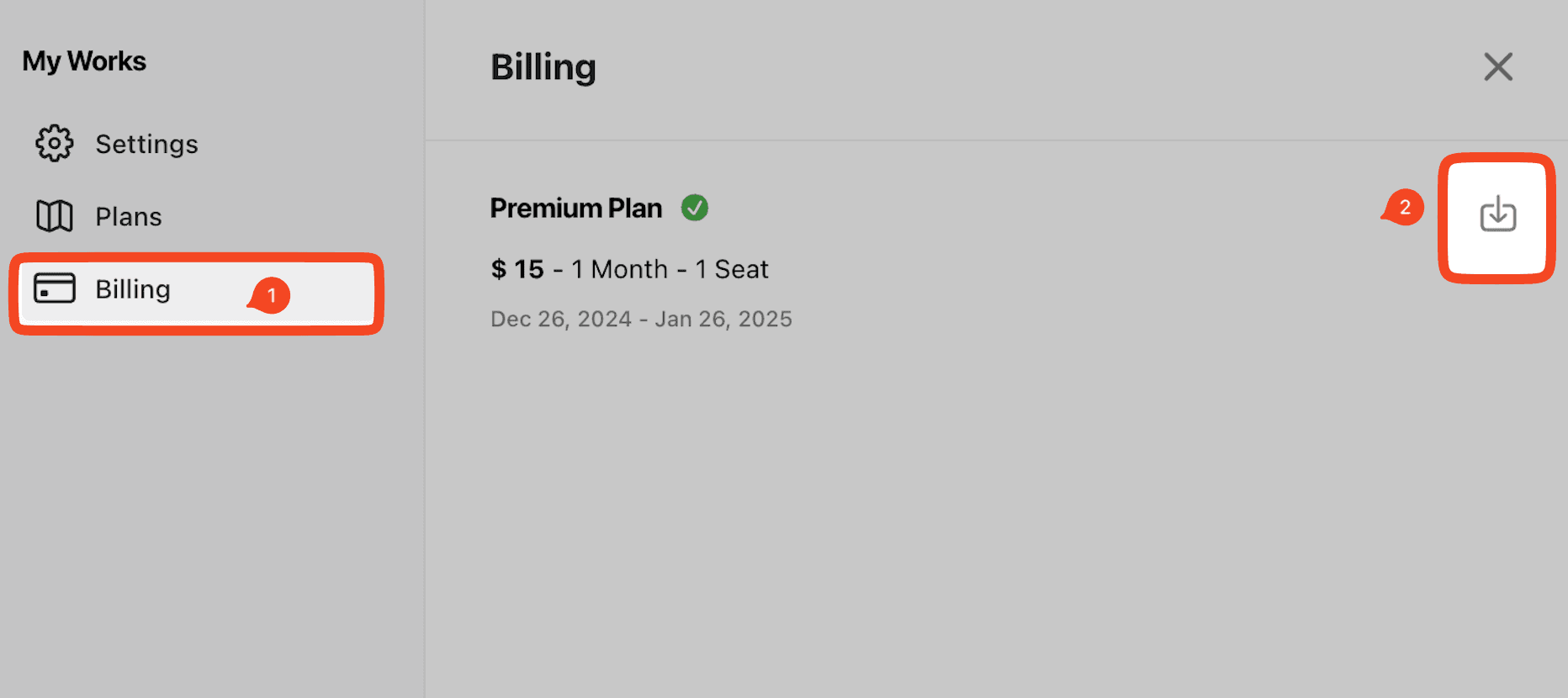 找到您需要的訂單,點擊下載圖標以檢索發票或更新帳單資訊。