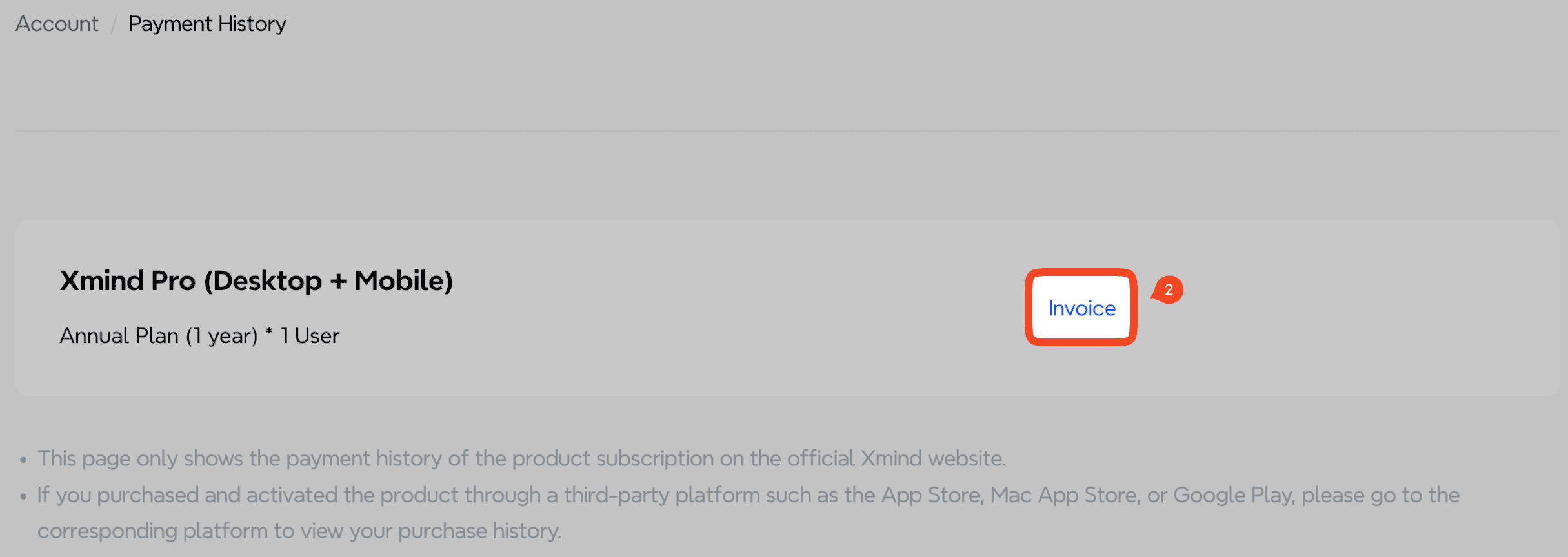 透過其他應用商店(例如 Apple App Store 或 Google Play Store)購買的訂閱需要您直接聯繫相關平台以獲得發票。