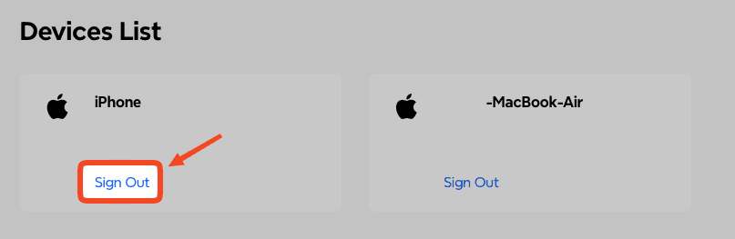 單擊要解除綁定的設備旁邊的登出。