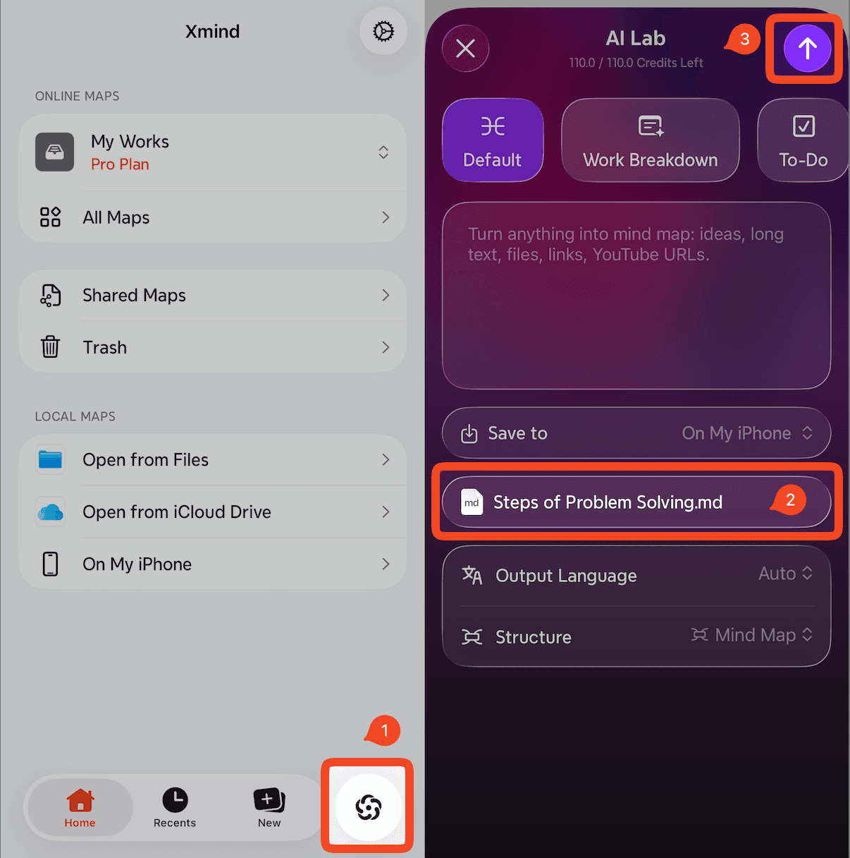 輸入提示語,選擇輸出語言和結構,讓 AI 為您生成心智圖。