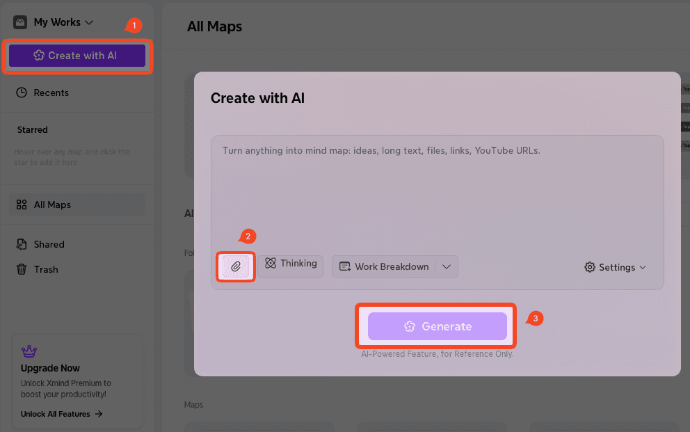 導航至所有導圖→+ 創建新→導入。