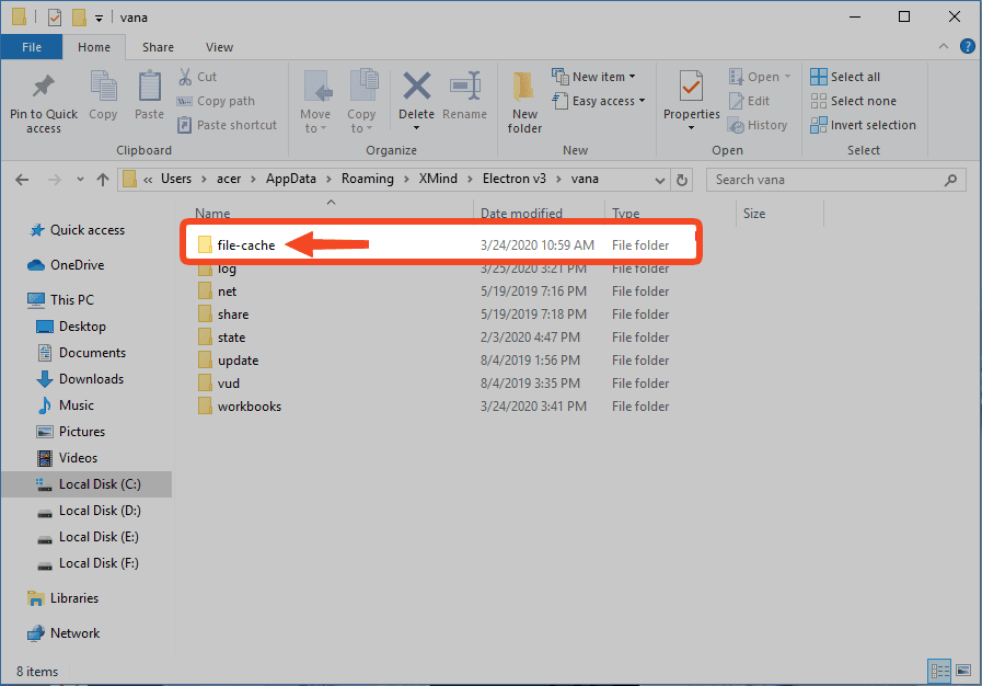 將以下路徑複製並粘貼到地址欄,然後按 Enter: %HOMEPATH%\AppData\Roaming\XMind\Electron v3\vana