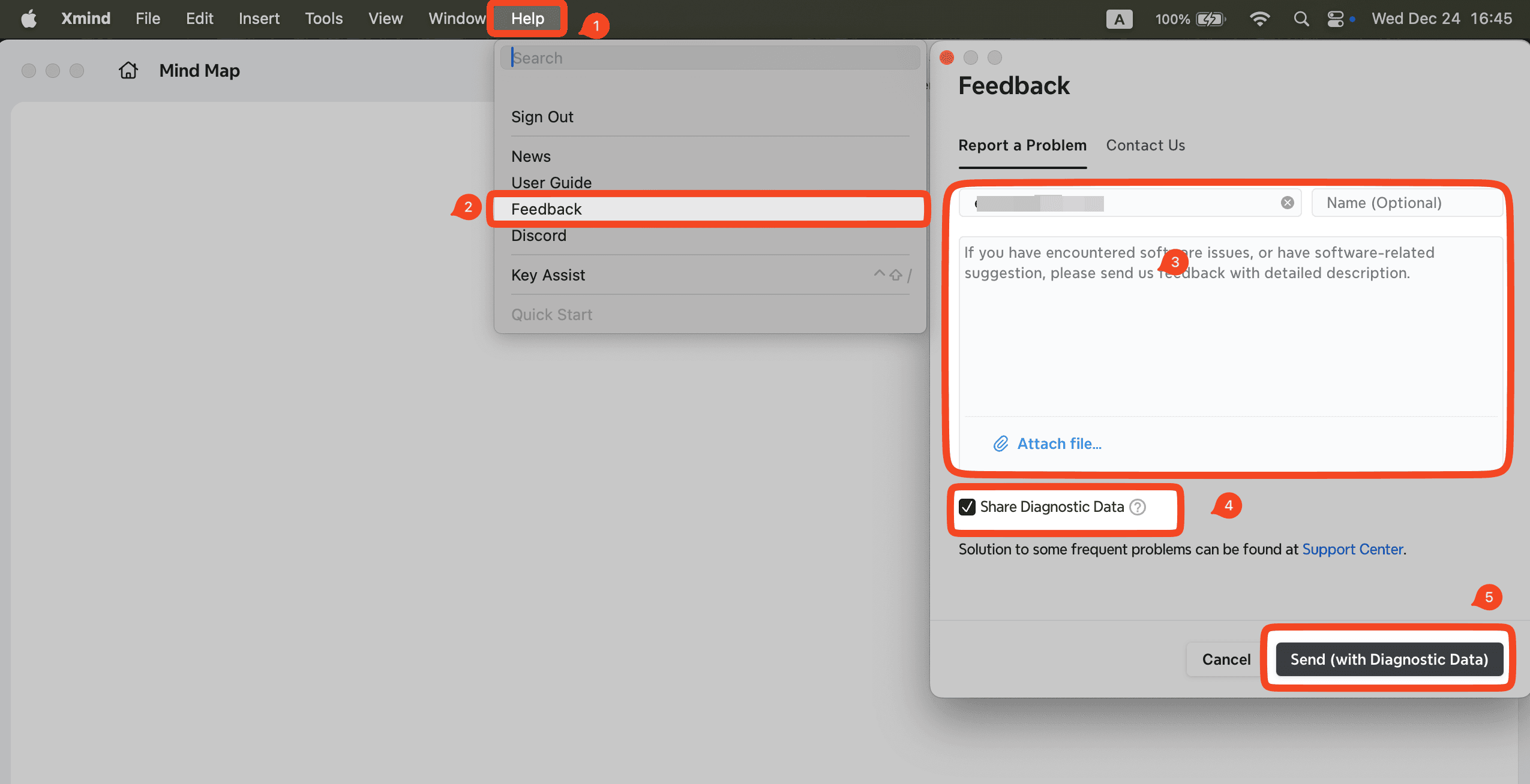 如果您在使用 Xmind 時遇到問題,請直接從您使用的應用程式中提交反饋。這能讓我們接收診斷數據,更好地了解問題。