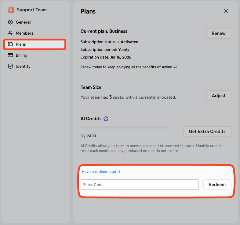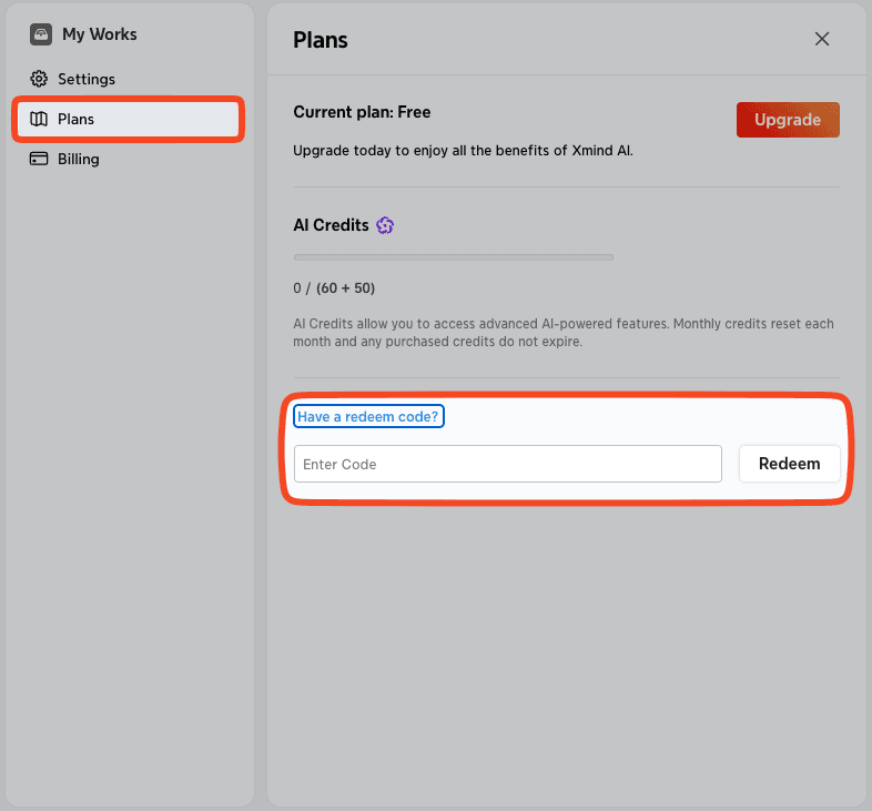 您可以在桌面和行動應用程式上兌換您的Xmind訂閱代碼,或者直接通過您的Xmind帳戶在線兌換。