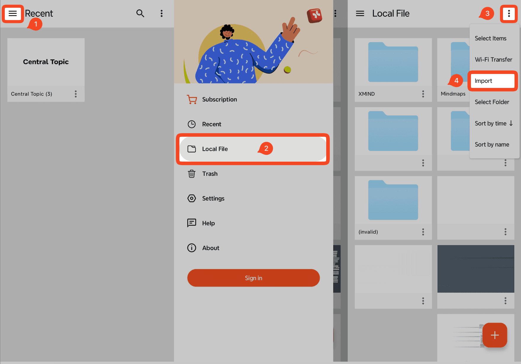 您可以通過以下方法將心智圖匯入到Xmind for Android: